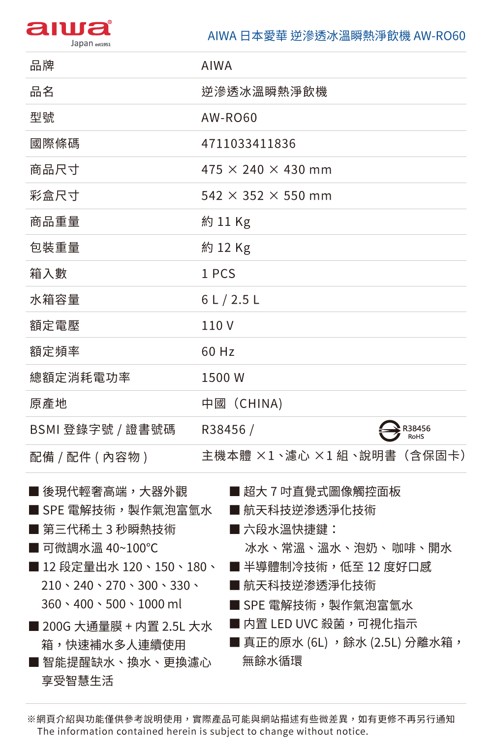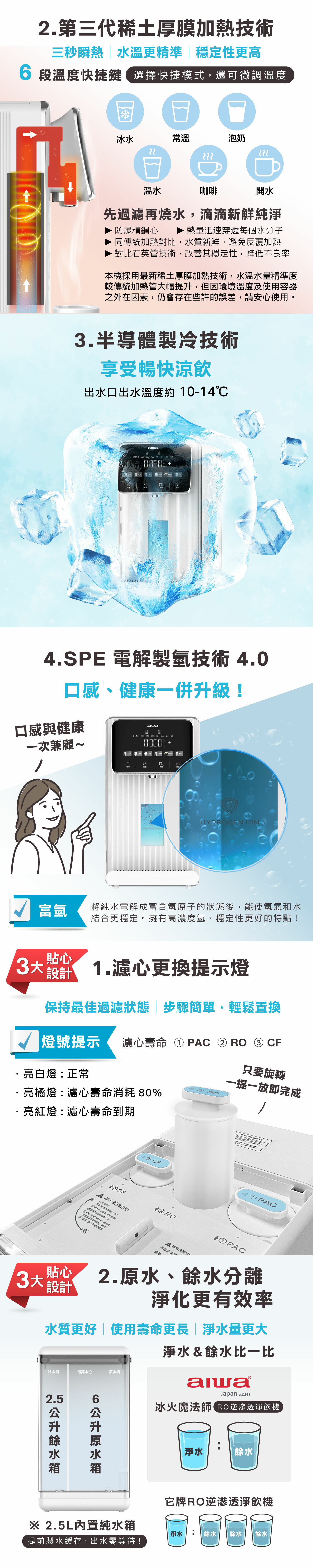 .真正的原水(6L) ,餘水(2.5L)分離水箱,無餘水循環