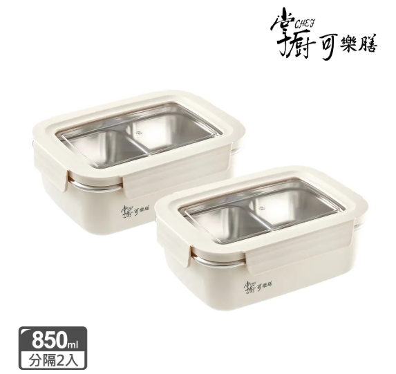 掌廚可樂膳 不鏽鋼分隔防燙保鮮盒(850ML-兩入組)