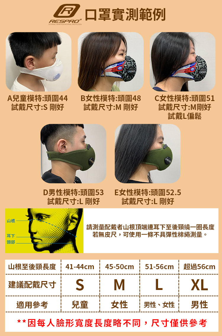 原廠提供尺寸表內附的數據為一般大眾適用的,且口罩的尺寸為固定的,無法量身訂做。(我們不提供加長、裁剪服務)